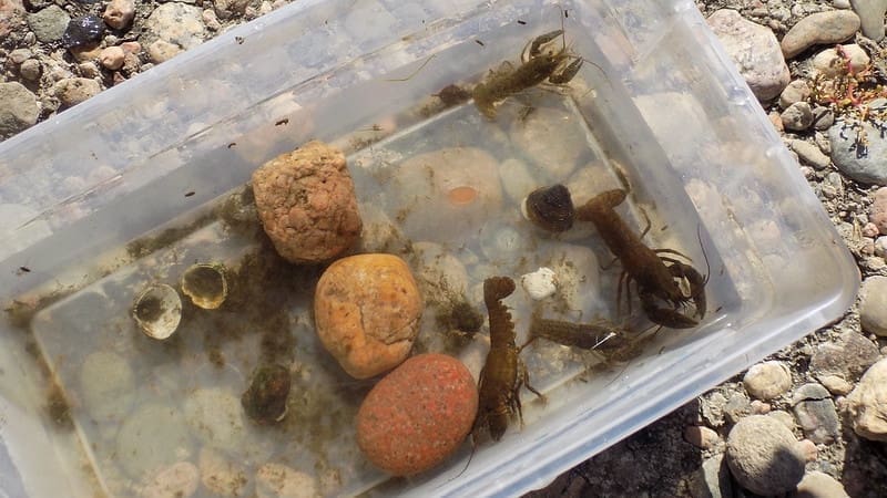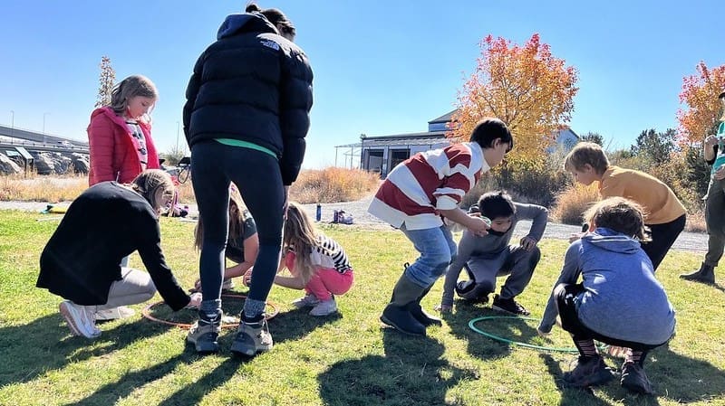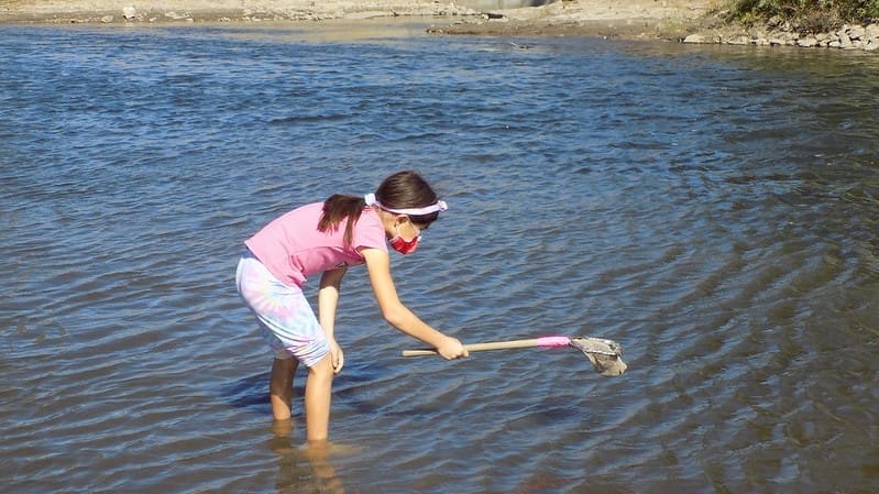 On this beautiful fall Friday we all started out by sharing our names, favorite and least favorite bugs, and learning the differences between bugs and other insects. Next we took things outside to play some fun games all about bugs and how they see and feel the world. Then, after lunch, we took advantage of the warm afternoon sun to explore in the river and see how many insect and invertebrate critters we could find!