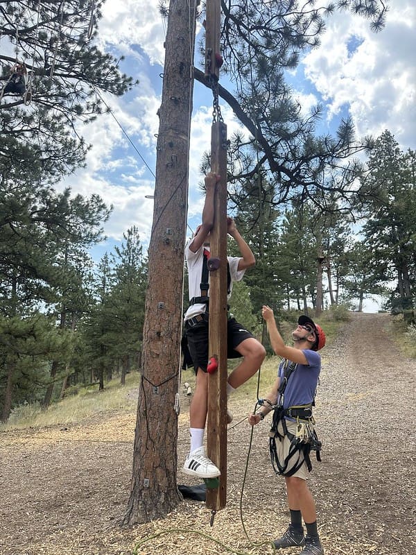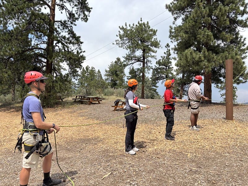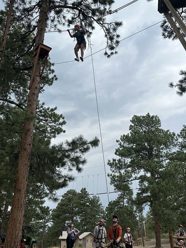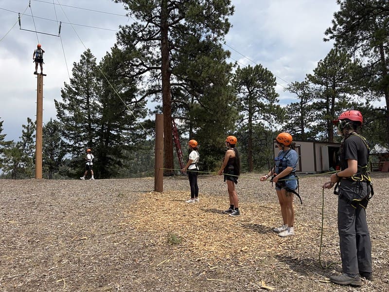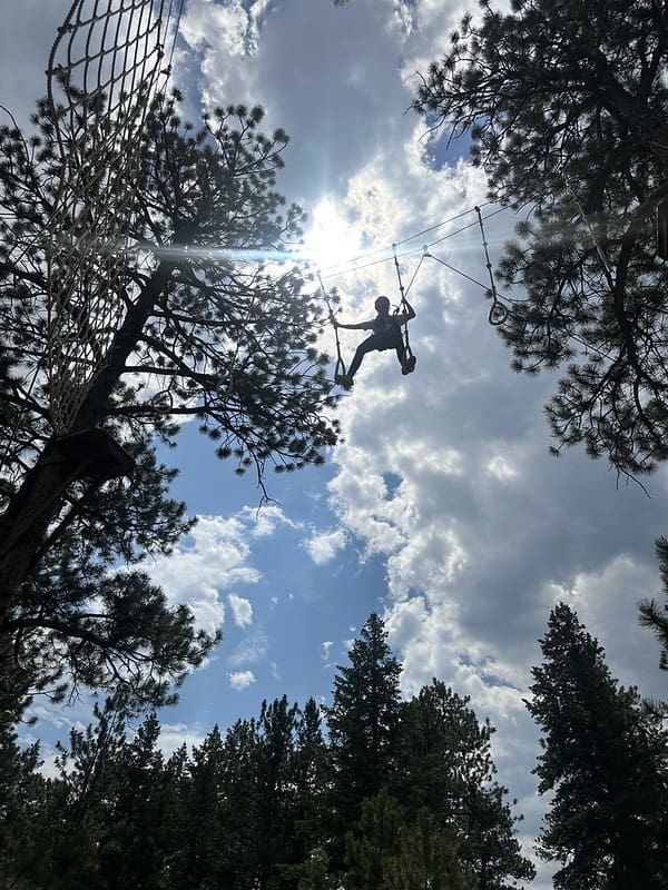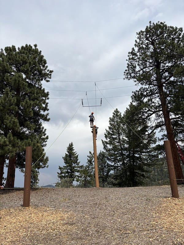 Nestled in some towering Ponderosa Pines with breathtaking views of the mountains, the course gave participants the chance to test their balance, bravery, and problem-solving skills. From team-building games on the ground to high elements that had students climbing into the treetops while safely harnessed in, the day was filled with laughter, encouragement, and plenty of challenges.